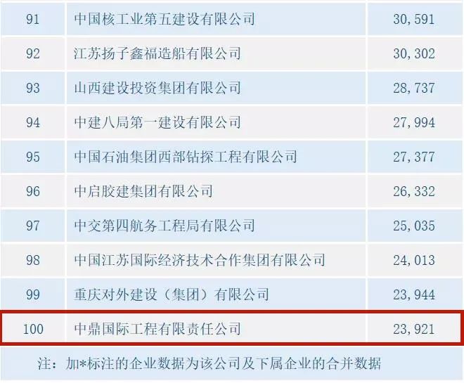 2月24日,商务部发布2020年中国对外承包工程100强榜单,中鼎国际连续第三年入选,在对外承包完成额100强榜单中位列82名,比上年度95名前进了13位;首次进入对外承包新签额100强榜单,位列100名。